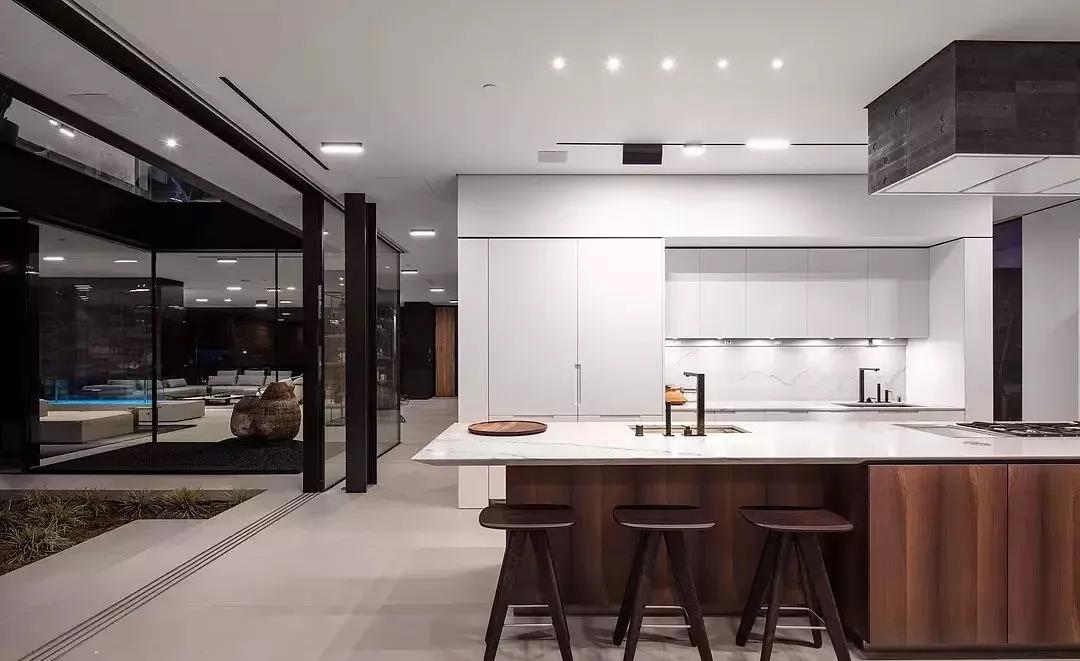 為此,在廚房,需要運(yùn)用組合照明方式,基礎(chǔ)光要明亮,照度要在300lux以上,局部光要精準(zhǔn),明確好用品用料的位置。同時(shí),也要避免直接光晃眼,盡可能營造一個溫馨人性化的空間。如此,放松下心情,完全無視線障礙的下廚,做一頓美食,不失為一日的巔峰狀態(tài)。
