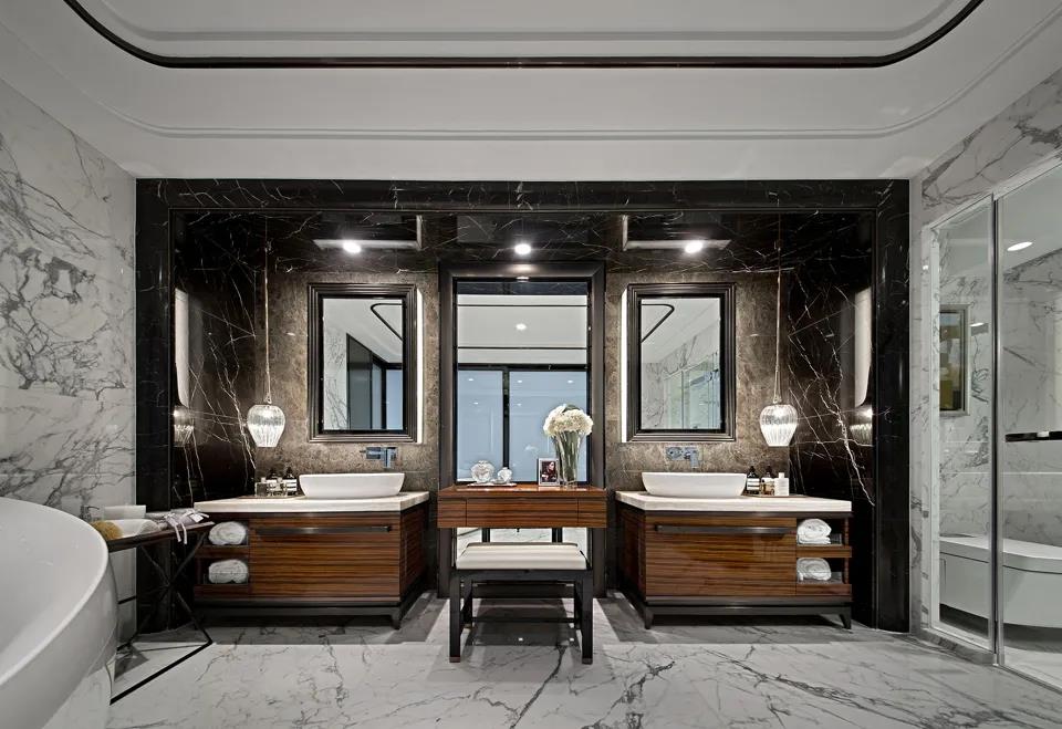 現(xiàn)在,我們再說到洗漱打扮的地方。首先,是在燈具的挑選上,要考慮到防水、散熱及不易積水等特性。同時(shí),燈具的色溫,要根據(jù)裝修材質(zhì)進(jìn)行選擇。